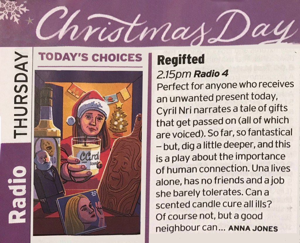 After stepping away from scripted work for a couple of years to write my first novel, I have recently returned to Radio 4’s airwaves (and available on BBC Sounds) with a major new audio drama, The Film, commemorating the 80th anniversary of the liberation of Bergen-Belsen, and telling the story of the collaboration between Sidney Bernstein and Alfred Hitchcock and their attempt to document the horrors that took place there along with a surreal Xmas day comedy Regifted tracing the adventures of a collection of unwanted Christmas presents.